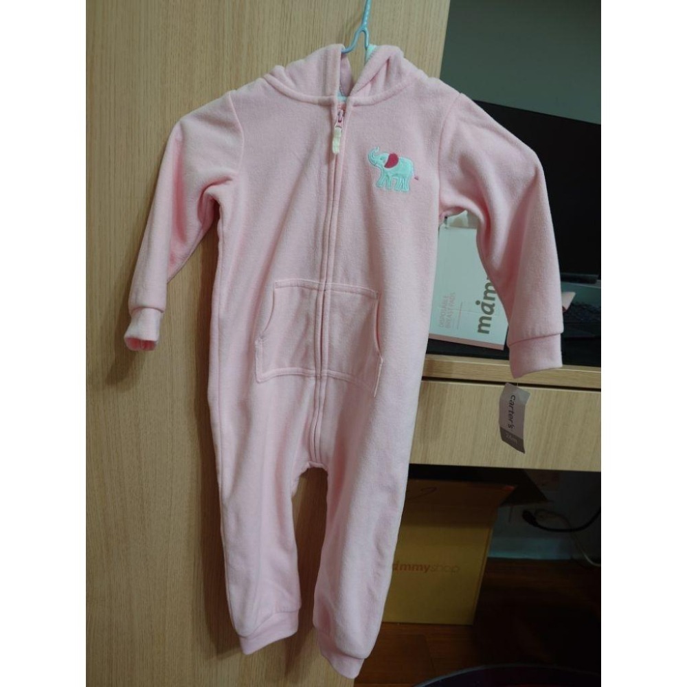CARTER'S 卡特 粉色大象刷毛連身衣 24M