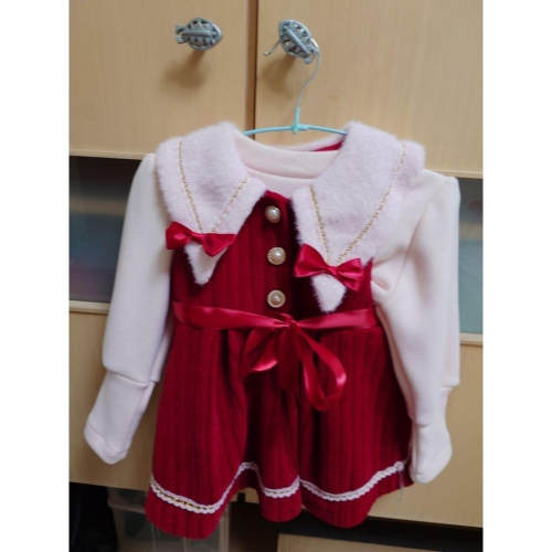 二手 女寶 加絨兩件式過年紅色洋裝 80