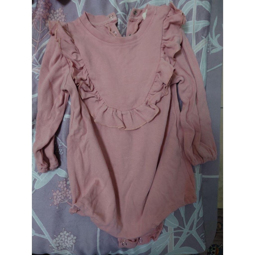 二手 可愛花邊裝飾長袖包屁衣 粉色 90