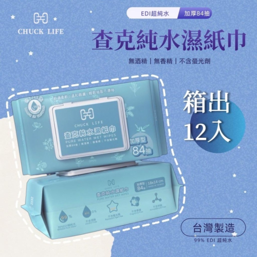 🔥現貨🔥箱出12包 MIT台灣製 查克EDI超純水濕紙巾 84抽有蓋純水濕紙巾 加厚款濕紙巾 嬰兒純水濕紙巾#濕紙巾