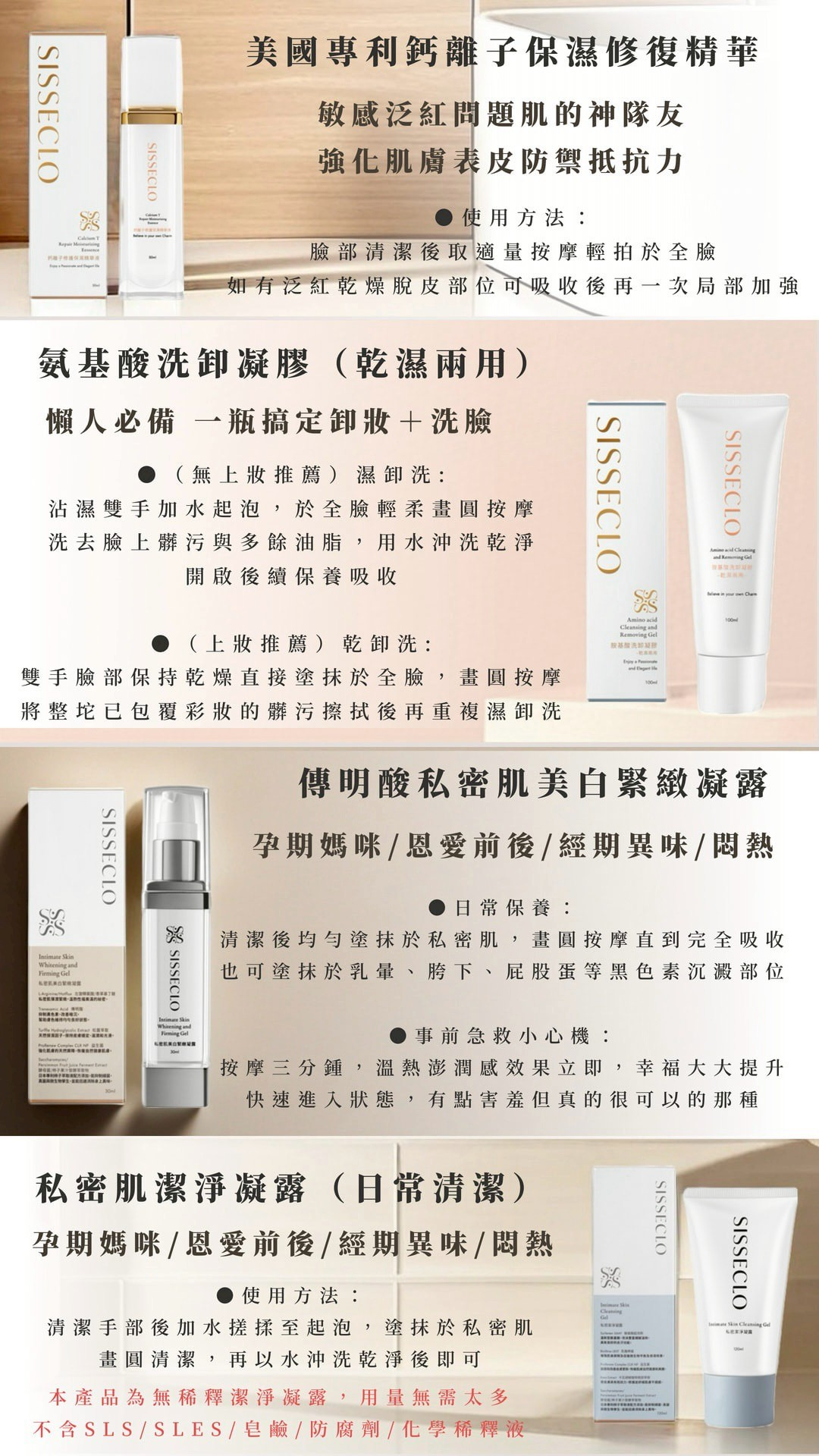 【SISSECLO靚源植戀-旅行組】胺基酸洗卸凝膠 積雪草潔顏露 鈣離子精華 私密緊緻凝膠 私密洗 10包送1包