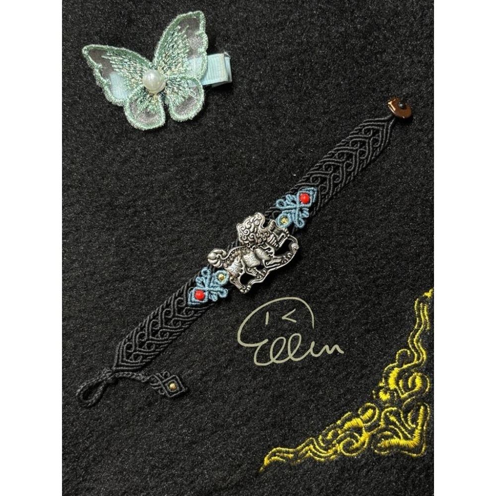 佐以雙層編織固定與紅硃砂點綴(配件不直接接觸皮膚),加上可調整長度的尾端設計,增添視覺豐富性與實用性