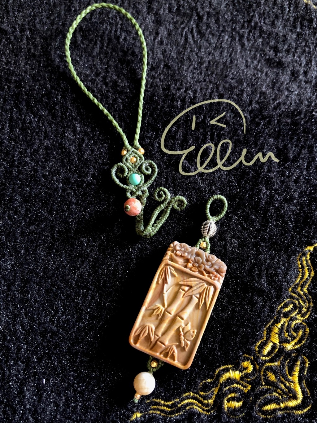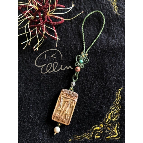 搭配有花、有竹、有蝴蝶等好寓意的海洋石雕刻墜飾牌