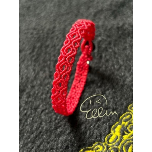 菱格回紋造型 蠟線編織紅色手繩,扣圈尾端再加一顆鍍銀色小鈴鐺(有微微聲響)