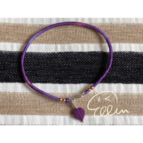 優雅紫色漸層段染蠟線的對色手工編製腳鍊