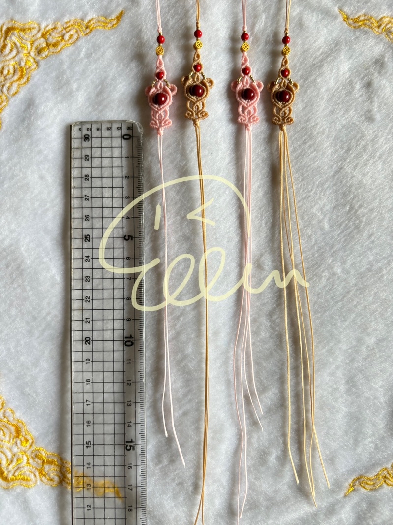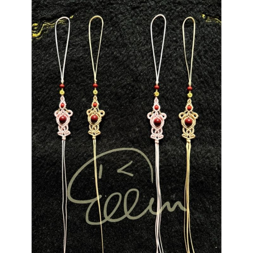 小吊飾下都預留至少13公分的綁繩線頭(均為0.8mm扁蠟線編製)