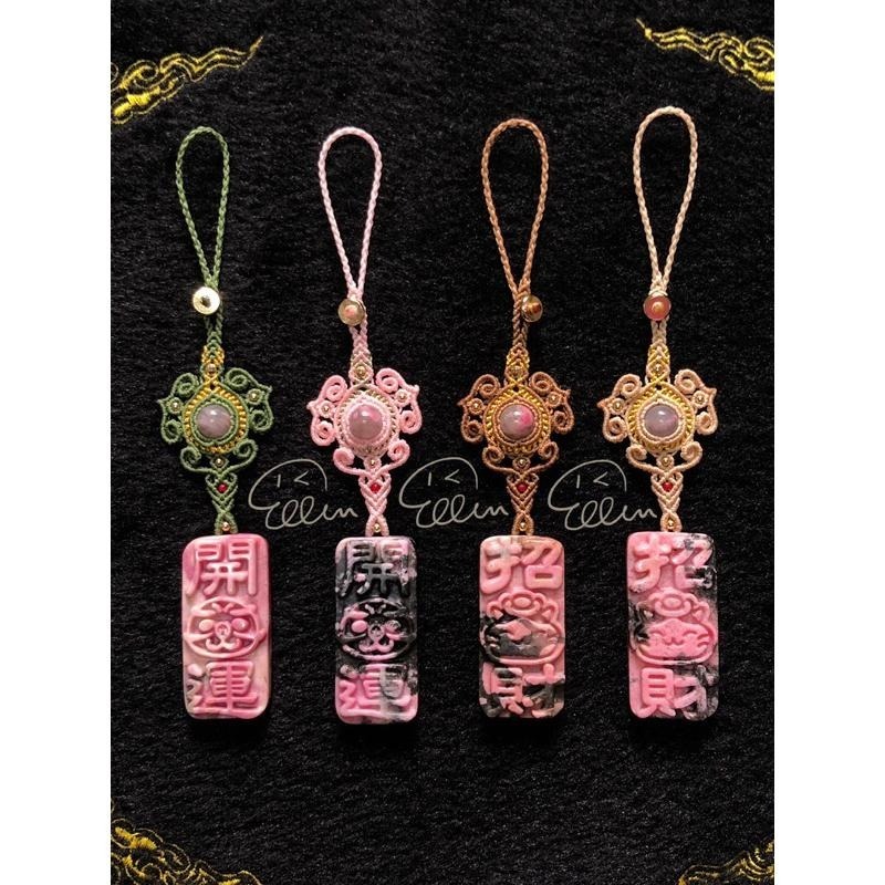 有粉、有墨的薔薇輝招財/開運雕刻墜牌