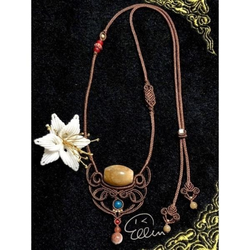 點綴在底下的小雙花雙色圓珠、鍊身上的小腰花與配珠變化,再搭配著相呼應的如意造型尾扣設計