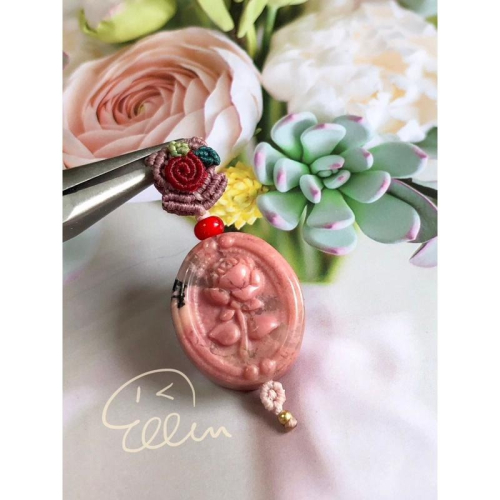 薔薇輝石玫瑰花牌約26.5*21.5mm,最厚處約9.6mm