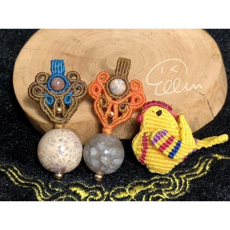 珊瑚玉大圓珠墜約16mm(橘棕墜頭)、17.8mm (藍棕墜頭)