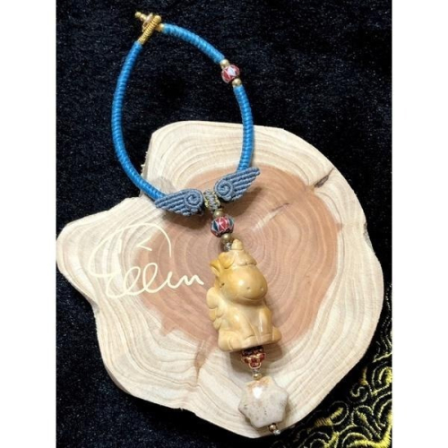 掛繩上點綴著彩色琉璃珠,座下則以雙層紅金色底座線圈與紅銅圓珠,再加上珊瑚玉六芒星配件珠,讓人不禁聯想到夢幻獨角獸🦄️與天上星星🌟,無比絕妙💕