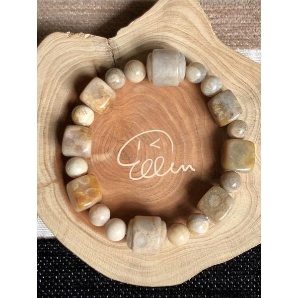 珊瑚玉隨形方塊與車輪造型珠設計手串