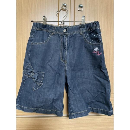 近全新二手女Snoopy 舒適蝴蝶結牛仔深色短褲 簡約 Uniqlo 風