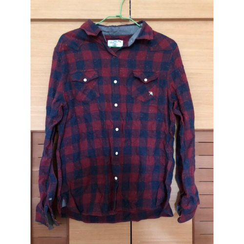 近全新 Arnold Palmer純棉格子 深色長袖上衣襯衫 雨傘牌