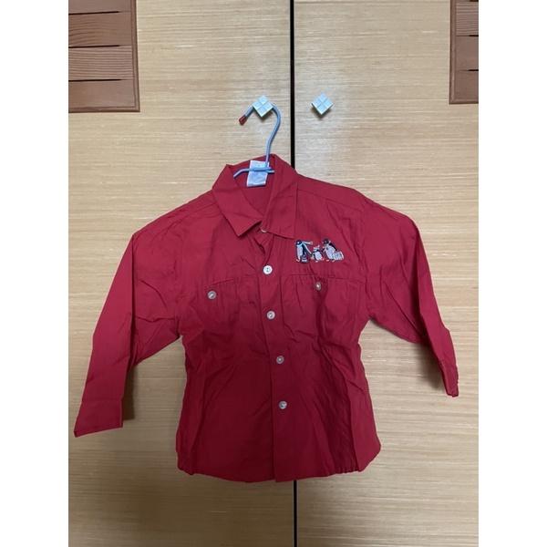 二手童裝mybaby純棉可愛企鵝 紅 領子長袖 外套 襯衫附鈕扣 適合兩歲以下
