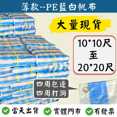 【薄款】藍白帆布 【台灣製】【大量現貨】PE 防水帆布 【雙面淋膜】塑膠布 帆布 防潮布 薄帆布 藍白條