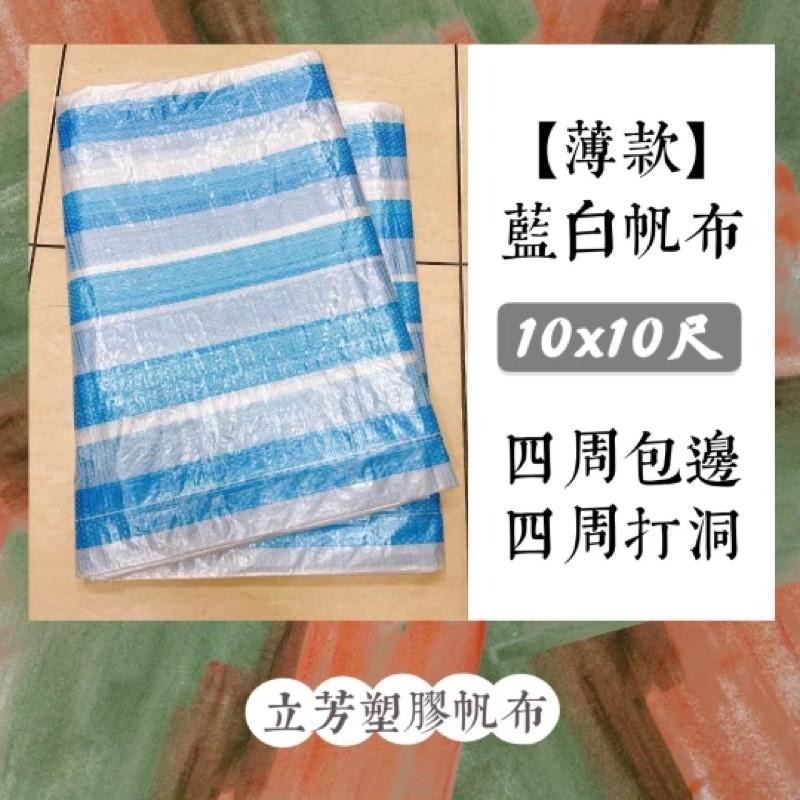 ✨ 【薄款】藍白帆布10*10尺(四周包邊打洞) 厚度0.1mm