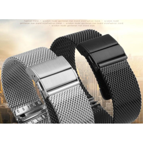 接口類型:平頭 錶帶材質:不鏽鋼 錶扣:雙按折疊扣 顏色:銀色、金色、黑色 帶寬:18MM、20MM、22MM 下單前請先詢問你要的尺寸是否有存貨
