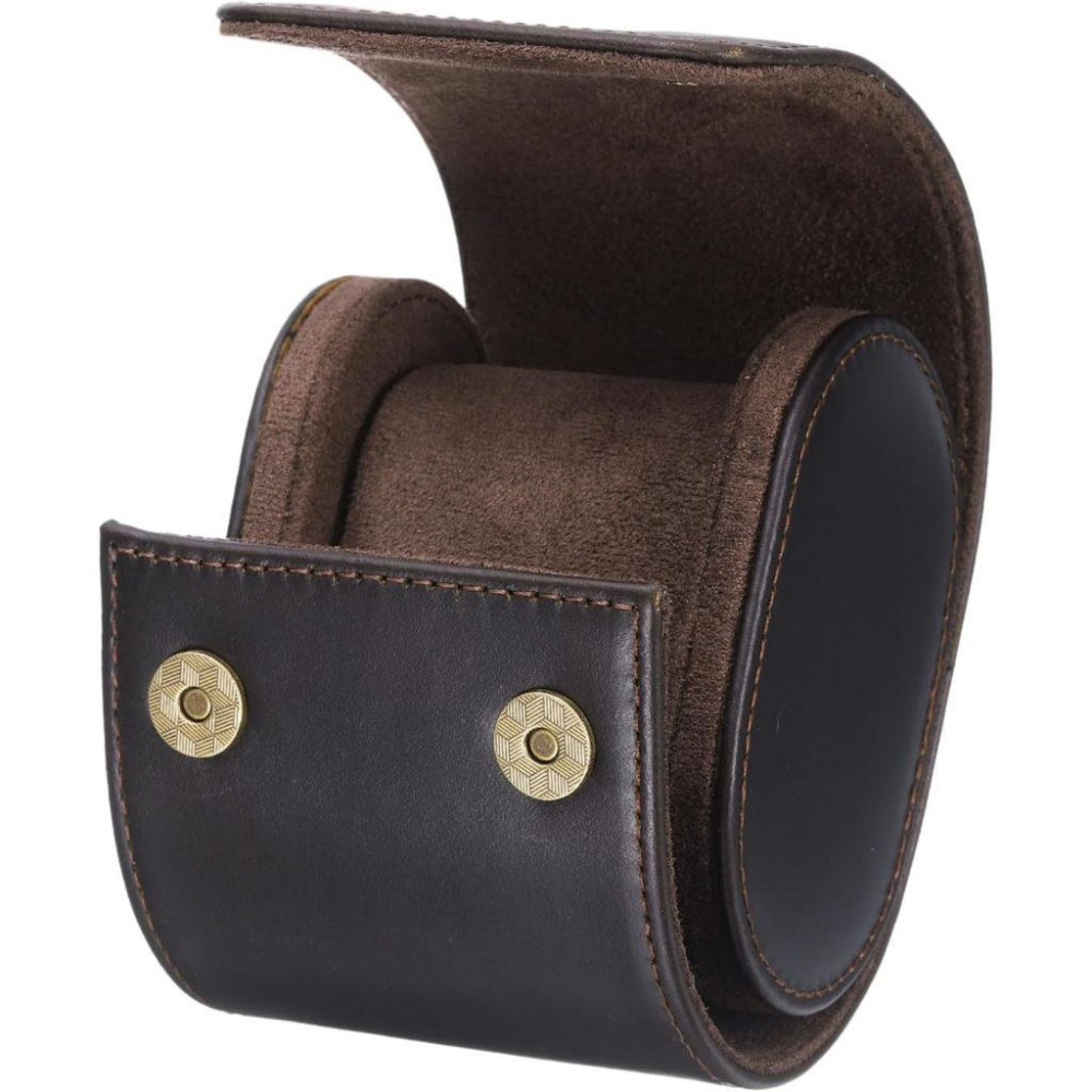 雙開深咖啡色單支旅行用錶盒 頭層皮單只快扣錶盒 單支入真皮手錶收納盒 出國用真皮旅行錶盒 真皮攜帶錶盒