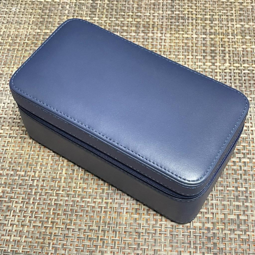 三支旅行真皮藍色納帕紋錶盒 頭層皮手錶收納包 腕錶收藏旅行包 拉鏈式 三支方型錶盒 藍色錶盒 購買贈送首飾枕一個