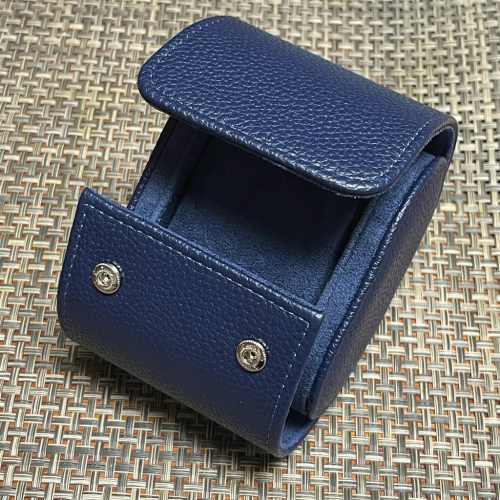 單支錶盒 深藍色旅行錶盒 防塵手錶收納盒 方便攜帶出差 深藍 簡約腕錶盒皮質