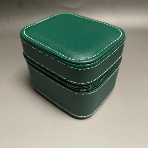 產品名稱: 單只裝旅行皮錶盒 產品尺寸:10*8*8CM 產品重量:180公克 產品材質:表面PU皮,內絨布填充。 錶枕材質:絨布 中間內層部份為軟式材質可以依手錶手圍大小做調整 商品顏色:綠色 使用上注意一下潮濕氣候及太陽光曬