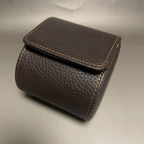 手工頭層牛皮製作 單支旅行真皮荔技紋錶盒 頭層皮手錶收納包 腕錶收藏旅行包 頭層皮 牛皮 咖啡色錶盒