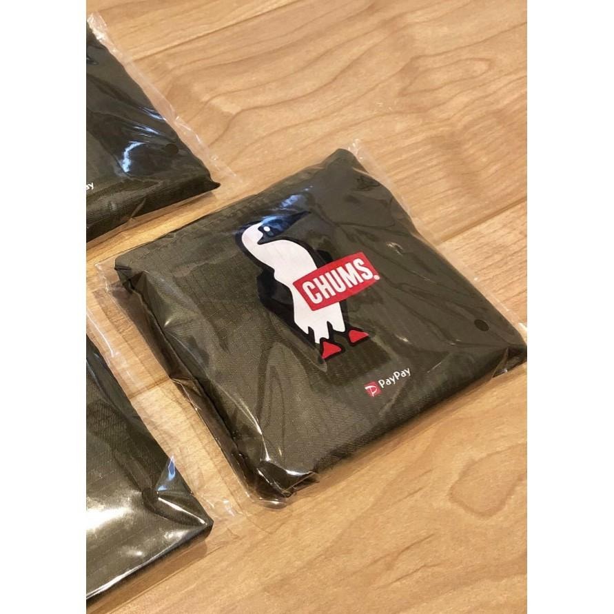 日本7-11X CHUMS X PAYPAY 聯名推出的限量購物袋 CHUMS背著7-11購物袋,使用著PAYAPY支付的聯名圖案