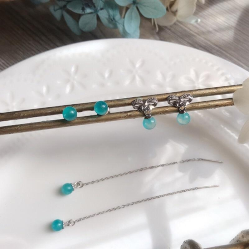 #925 #925純銀 #純銀 #純銀耳環 #天然石 #天河石 #亞馬遜石 #垂墜式耳環 #耳線 #蝴蝶結耳環 #鑲鋯 #原創 #手作飾品