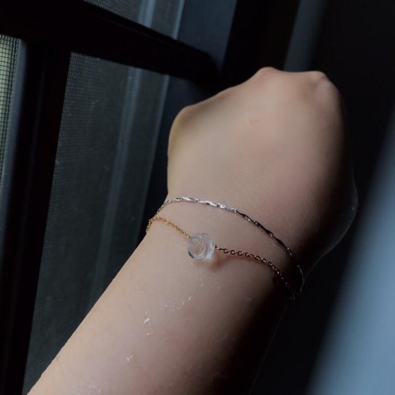 #原創設計 #925純銀 #純銀手鍊 #14k包金 #14k包金手鍊 #白玫瑰 #白水晶 #玫瑰花手鍊 #雕刻玫瑰 #手作商品