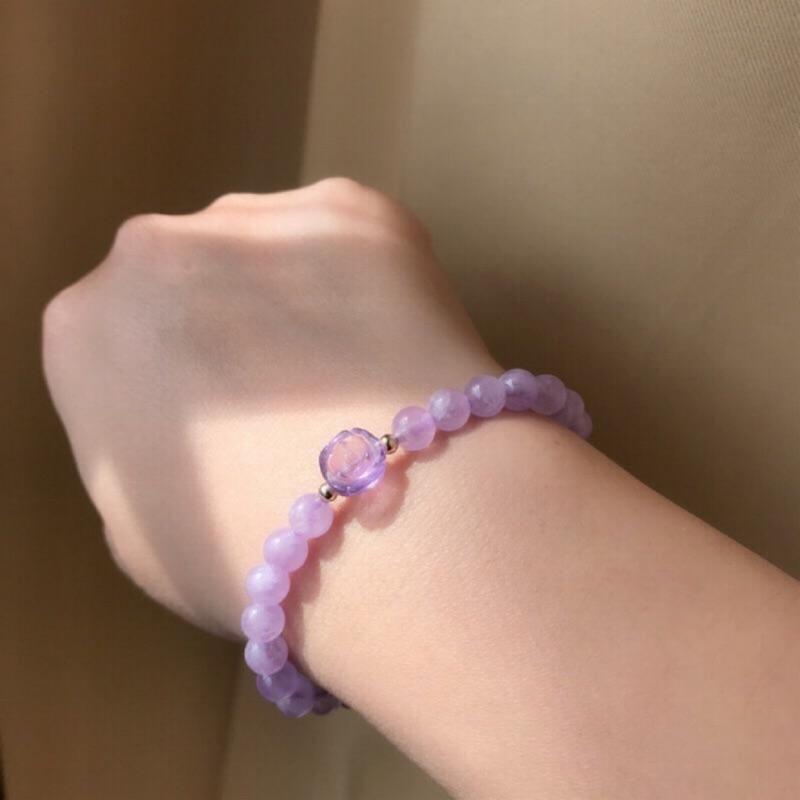 #紫水晶手鍊 #天然石 #玫瑰花 #薰衣草紫水晶 #彈力繩 #14k包金 #天然水晶 #紫水晶 #手作飾品