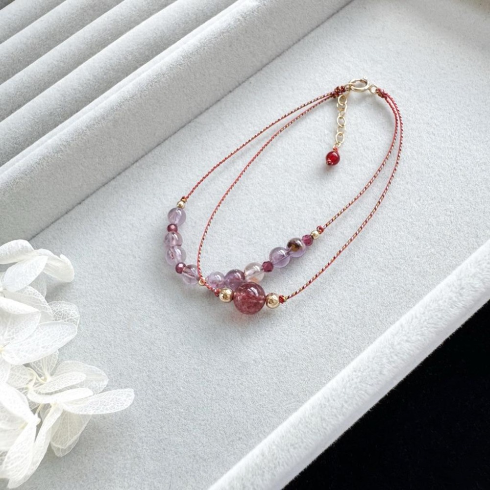 #雙層手鍊 #極細 #隱形 #紅繩 #許願 #祈福 #本命年 #避煞 #九紫離火 #鴿血紅草莓晶