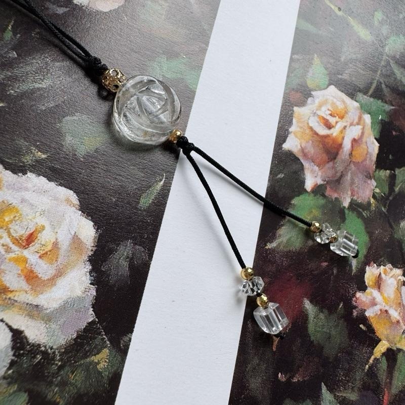 #天然白水晶雕刻玫瑰花手機吊飾 #含共生礦