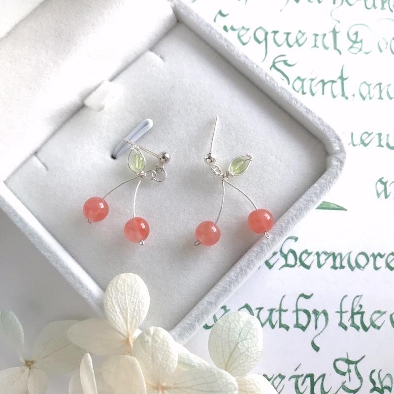 ♡ s925純銀編製櫻桃耳環 冰冰透透的紅瑪瑙 令人垂涎欲滴的櫻桃