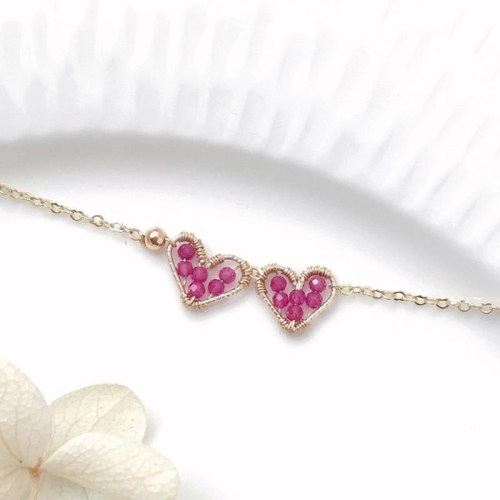#原創設計 #手作飾品 #14k銅鍍金項鍊 #桃紅尖晶石 #心心相印 #心型項鍊 #愛心 #鍍金項鍊 #手工製作
