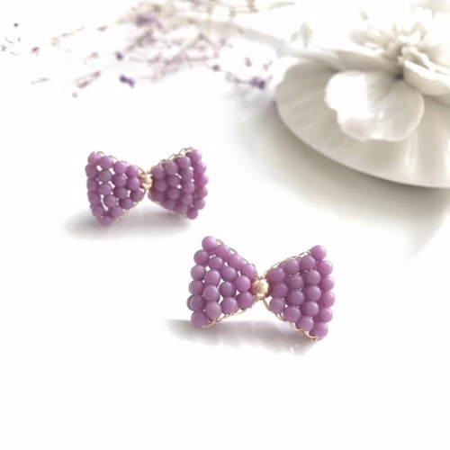 #原創設計 #天然紫雲母石 #手工編製 #14k銅鍍金耳環 #手作飾品 #蝴蝶結耳環 #天然水晶 #紫雲母#甜美#童話風