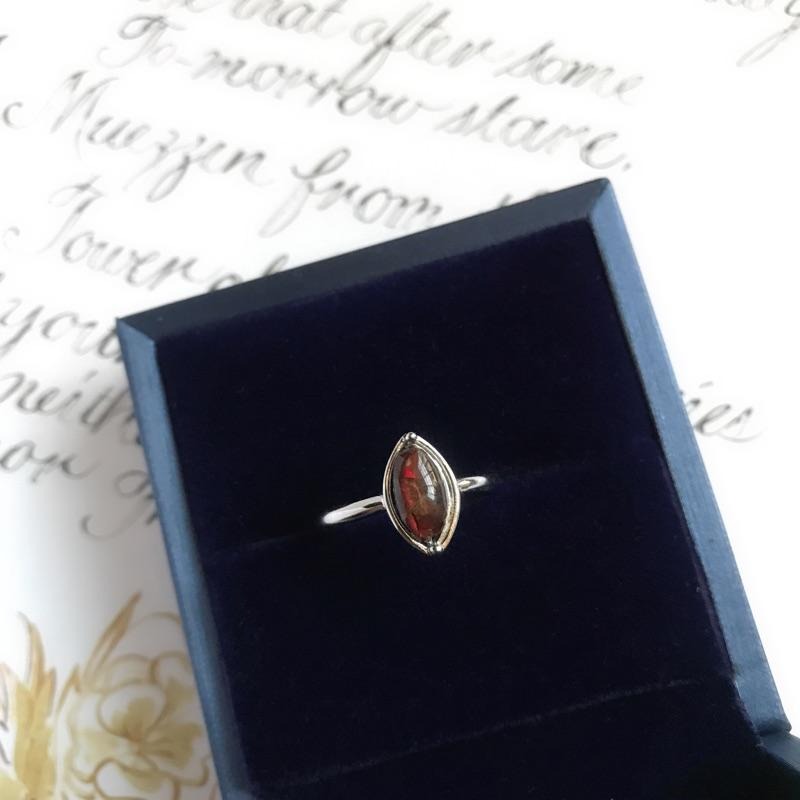 ,整體戒面呈現暗紅咖啡色,光線照射下可見紅色