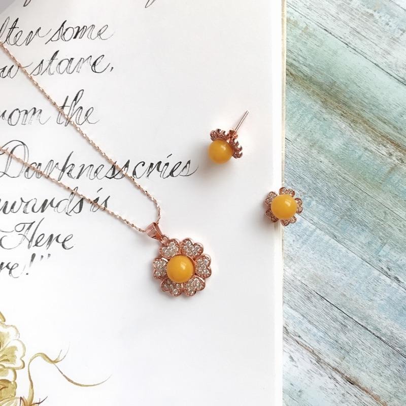 #s925純銀 #蜜蠟項鍊 #蜜蠟耳釘 #玫瑰金純銀耳環 #玫瑰金純銀項鍊 #花朵項鍊 #小花耳釘