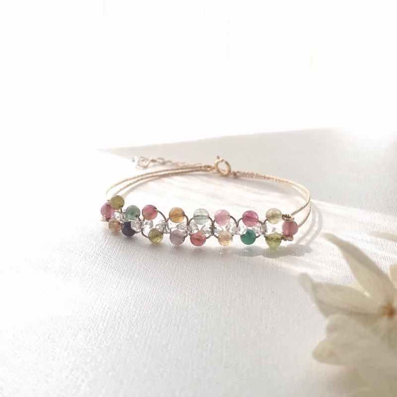 #原創設計 #天然碧璽 #碧璽手環 #手作飾品 #落入人間的彩虹 #白水晶 #14kgf手環 #天然水晶手環 #美國14KGF