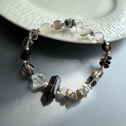 #自然色系 #雙尖水晶 #s925 #茶水晶 #白水晶 #瑪瑙 #黑髮晶 #銀月光 #幽靈水晶 #魔晶宙斯 #氣場守護 #情緒安定 #日常療癒 #守護 #穩定 #清晰 #自我平衡 #療癒 #中性風 #白黑茶灰 #質感 #文青風 #煙灰系 #美拉德風