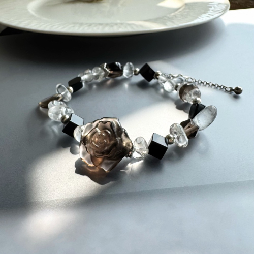 #天然水晶設計 #冰曜石玫瑰花 #黑瑪瑙 #白水晶 #茶水晶