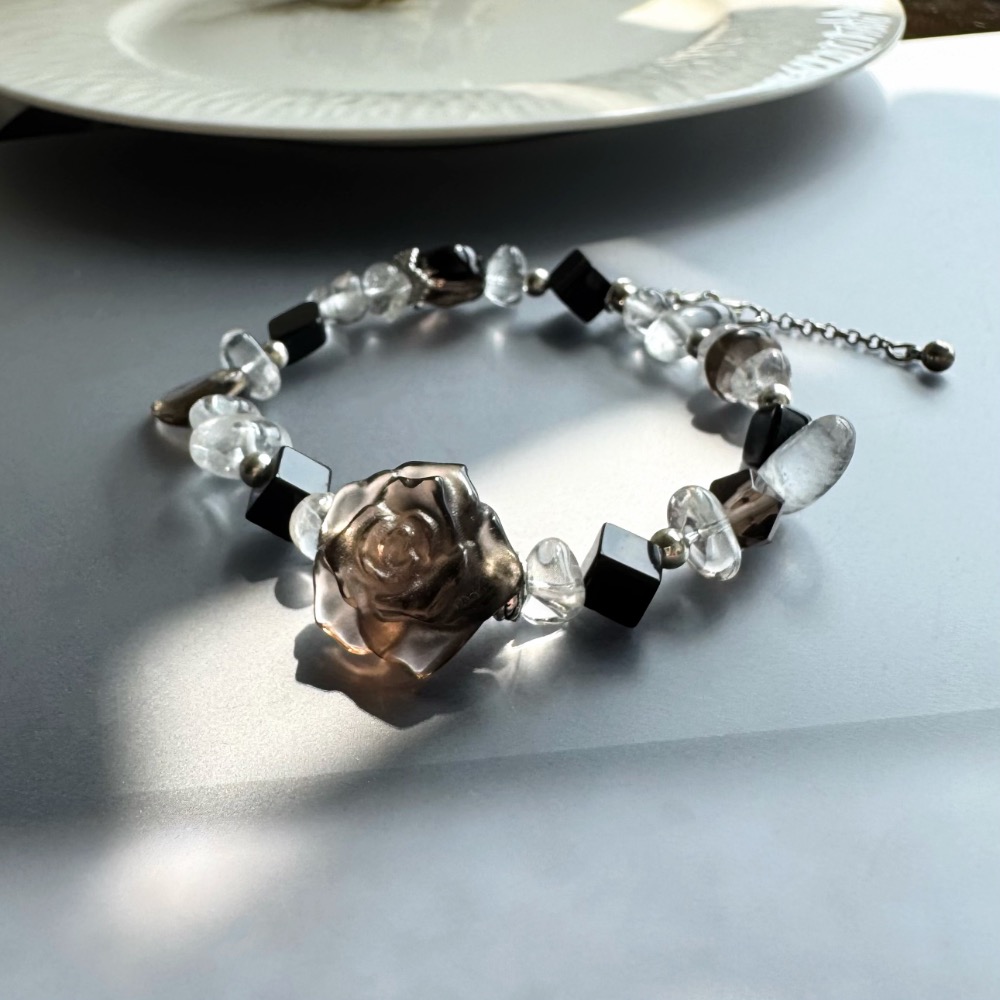 結合黑瑪瑙的沉穩、白水晶的純淨與茶水晶的柔和