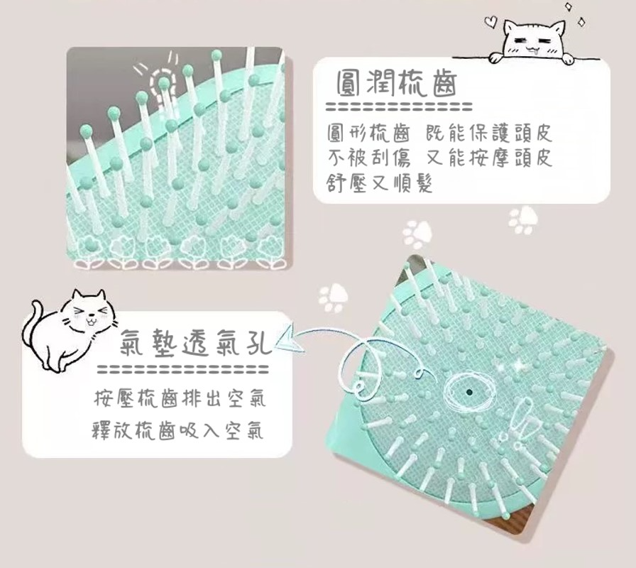 【氣墊梳】氣囊背板設計,有彈力感,能更直接按摩頭皮。