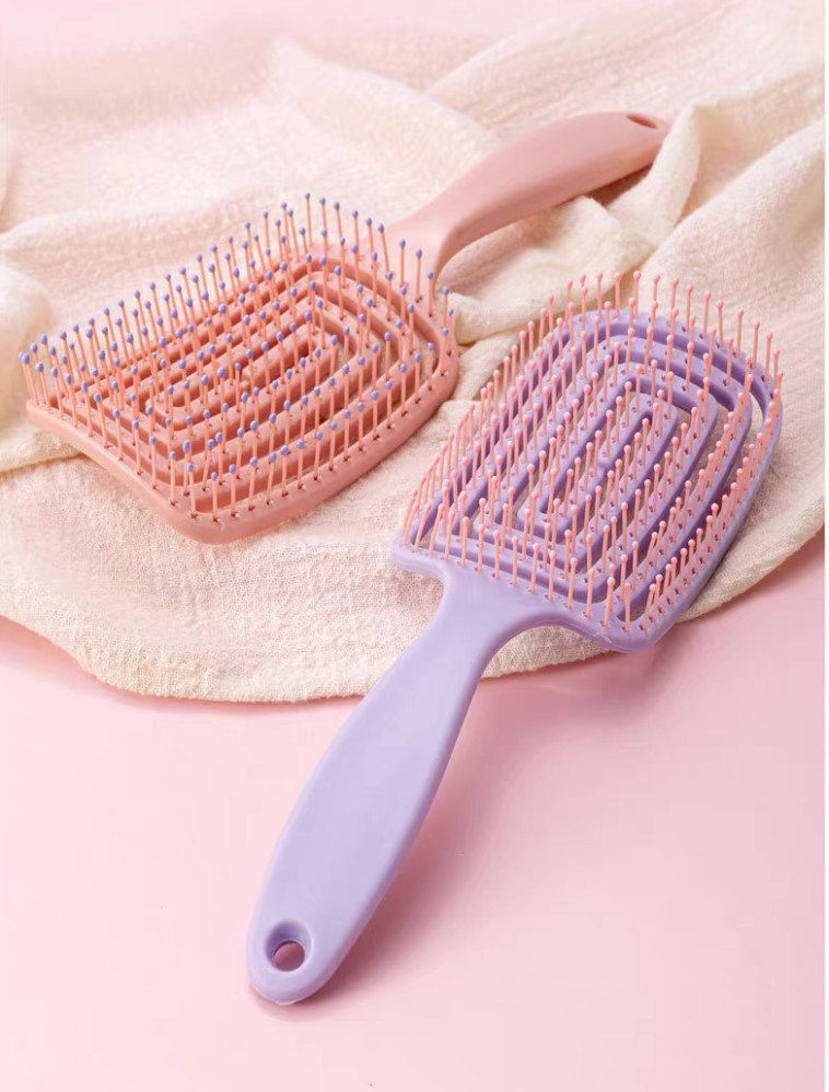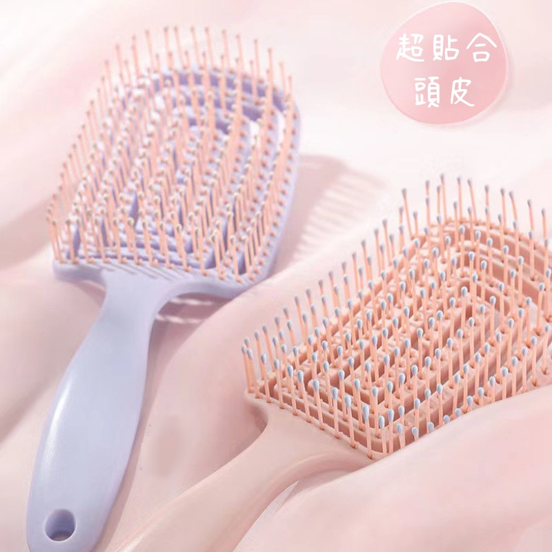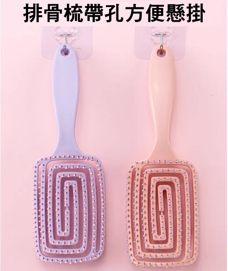 【方款排骨梳款】採彎月弧面,彈力鏤空背板設計 ,喜歡力道輕柔或頭髮易打結,吹整時往下梳再輕輕往上推蓬鬆頭髮效果好。