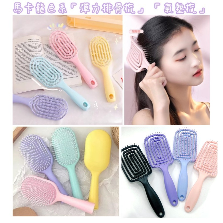 馬卡龍色系 彈力 排骨梳 氣墊梳 鏤空 按摩梳 梳子