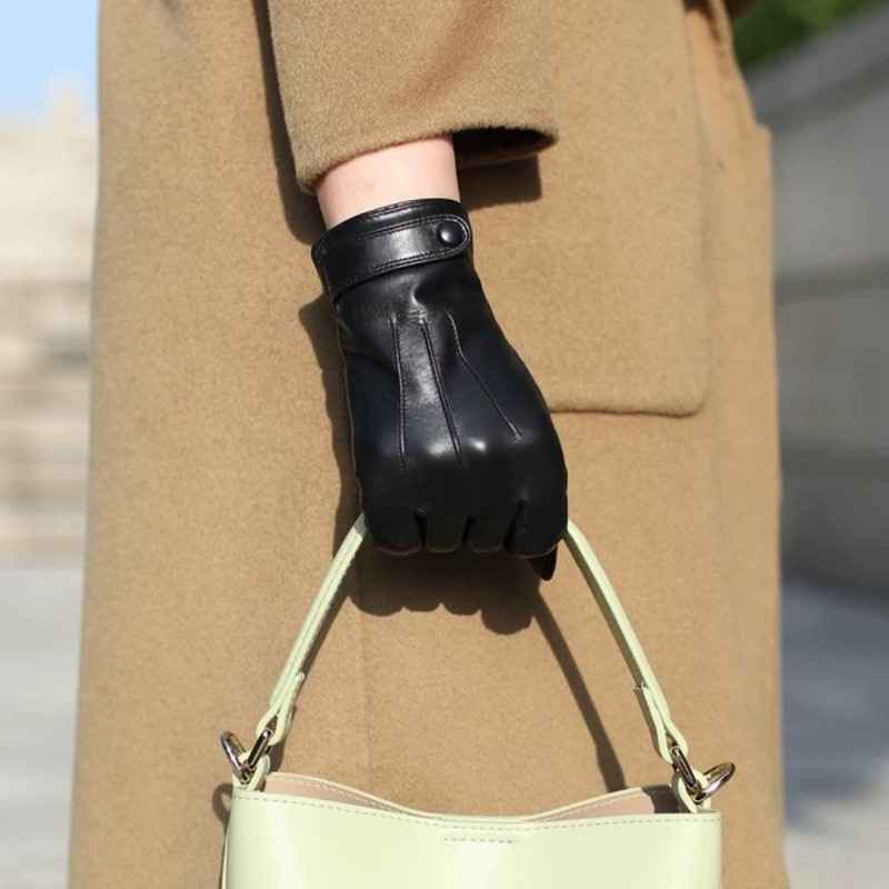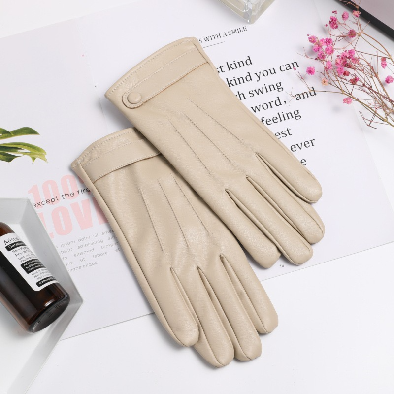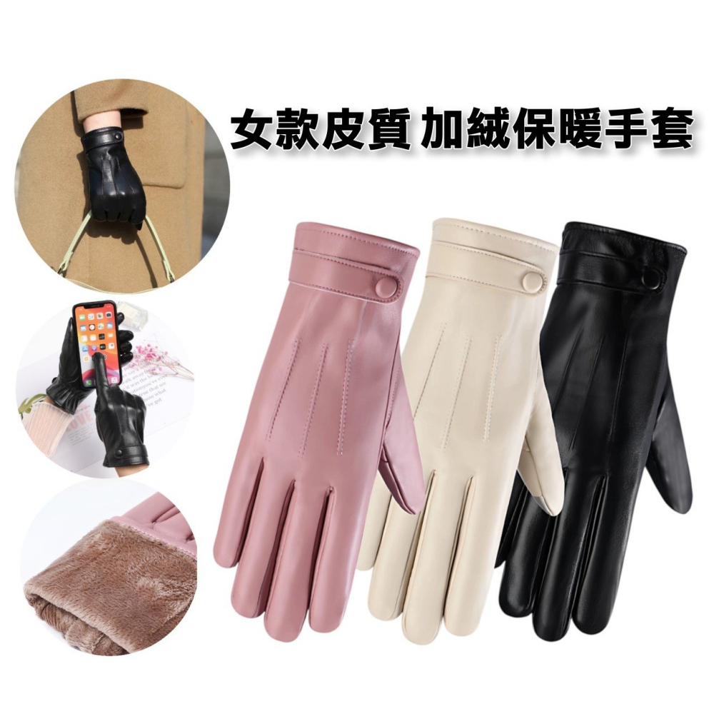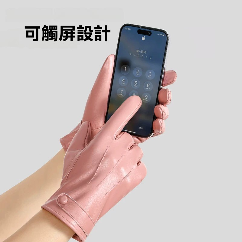 冬季女款可觸屏皮革手套 保暖手套 加絨防寒手套 冬季保暖手套 女士手套