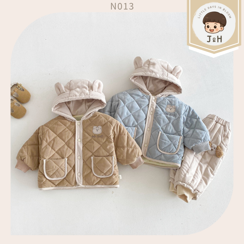 N013【預】熊熊造型菱格夾棉外套 咖/藍 (size:73~120cm)