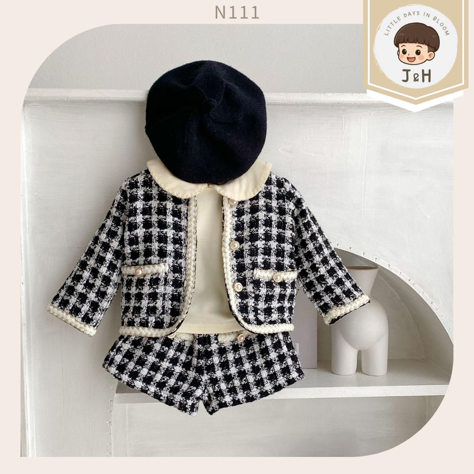 N111【預】黑白格小香風外套+短褲套裝 (size:66~100cm)