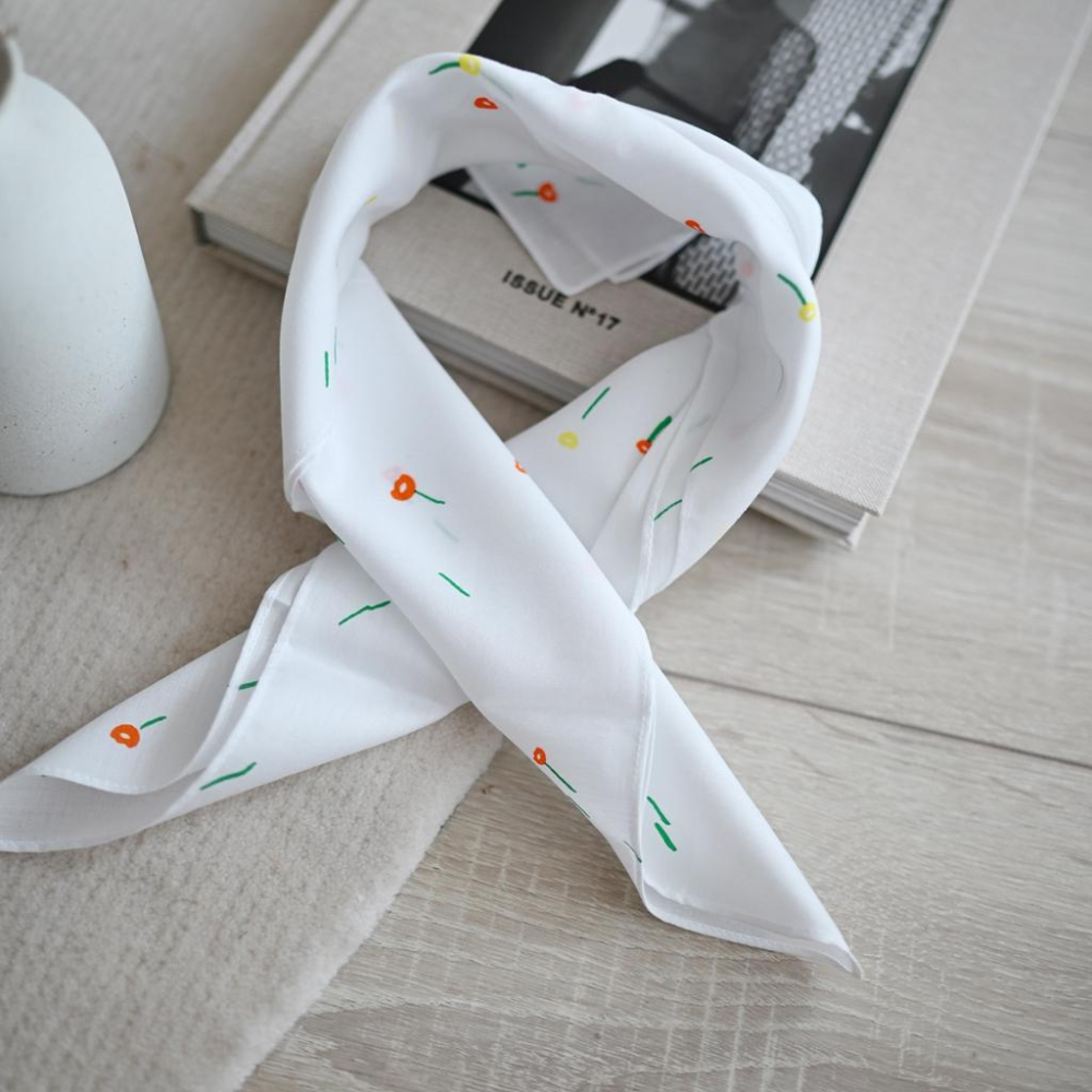 丸丸選品日本帶回日本製手帕IBUH純棉幾何設計圖小花白色手帕領巾