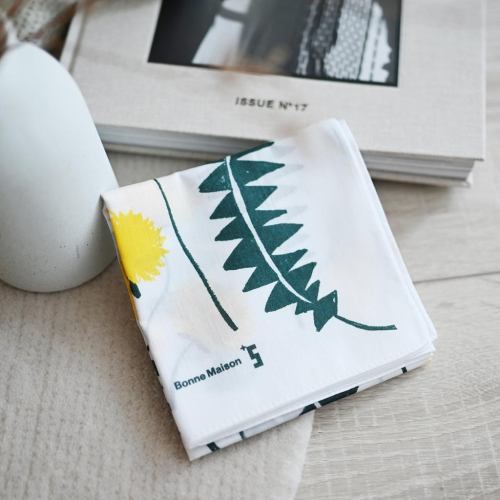 丸丸選品日本帶回日本製手帕bonne maison jp純棉幾何設計圖抽象領巾綠葉設計